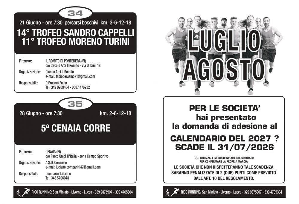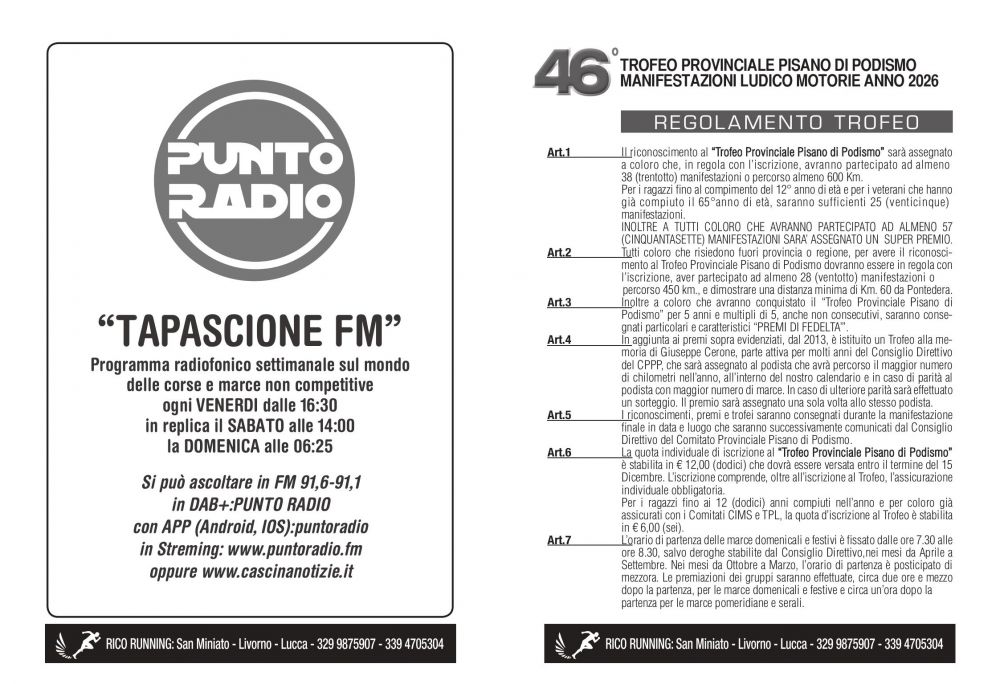 Fonte: CPPP COMITATO PROVINCIALE PISANO DI PODISMO